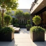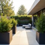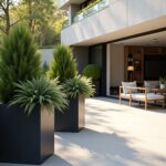 Popularne materiały na nowoczesny taras to drewno, beton, kompozyt oraz płytki ceramiczne imitujące naturalne surowce. Drewniany taras wygląda szlachetnie i przytulnie, betonowy – nowocześnie i minimalistycznie, a płytki ceramiczne są łatwe w utrzymaniu i dostępne w wielu wzorach